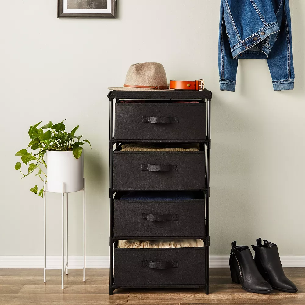 - Storage Bins with Drawers: Use this 4-tier dresser drawer to organize your tops, bottoms, undergarments, sweaters, hair accessories, and other closet items