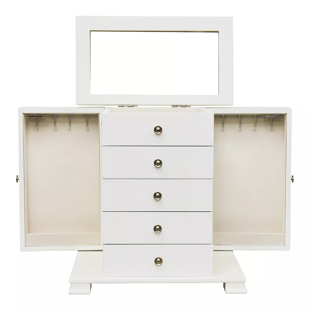 - 2 shaped swing-out doors with necklace hooks, 4 hooks on each door