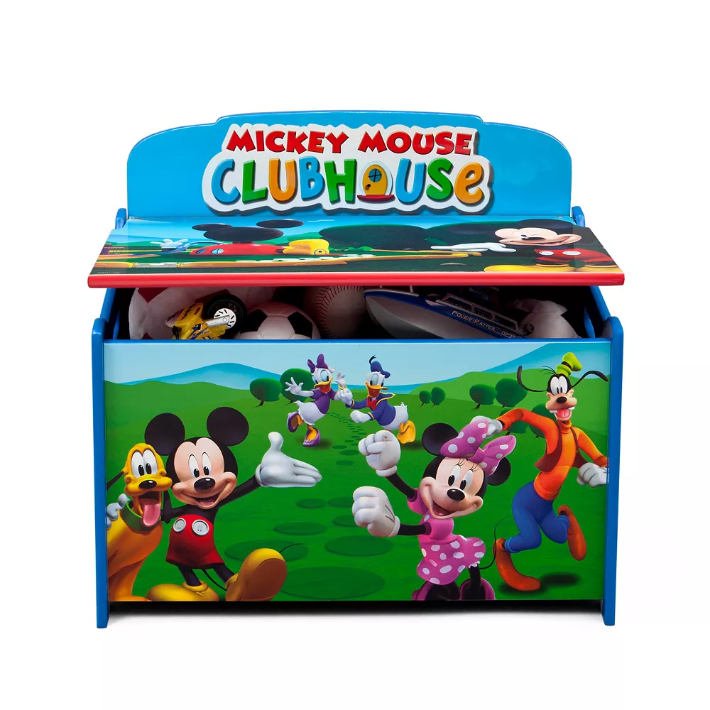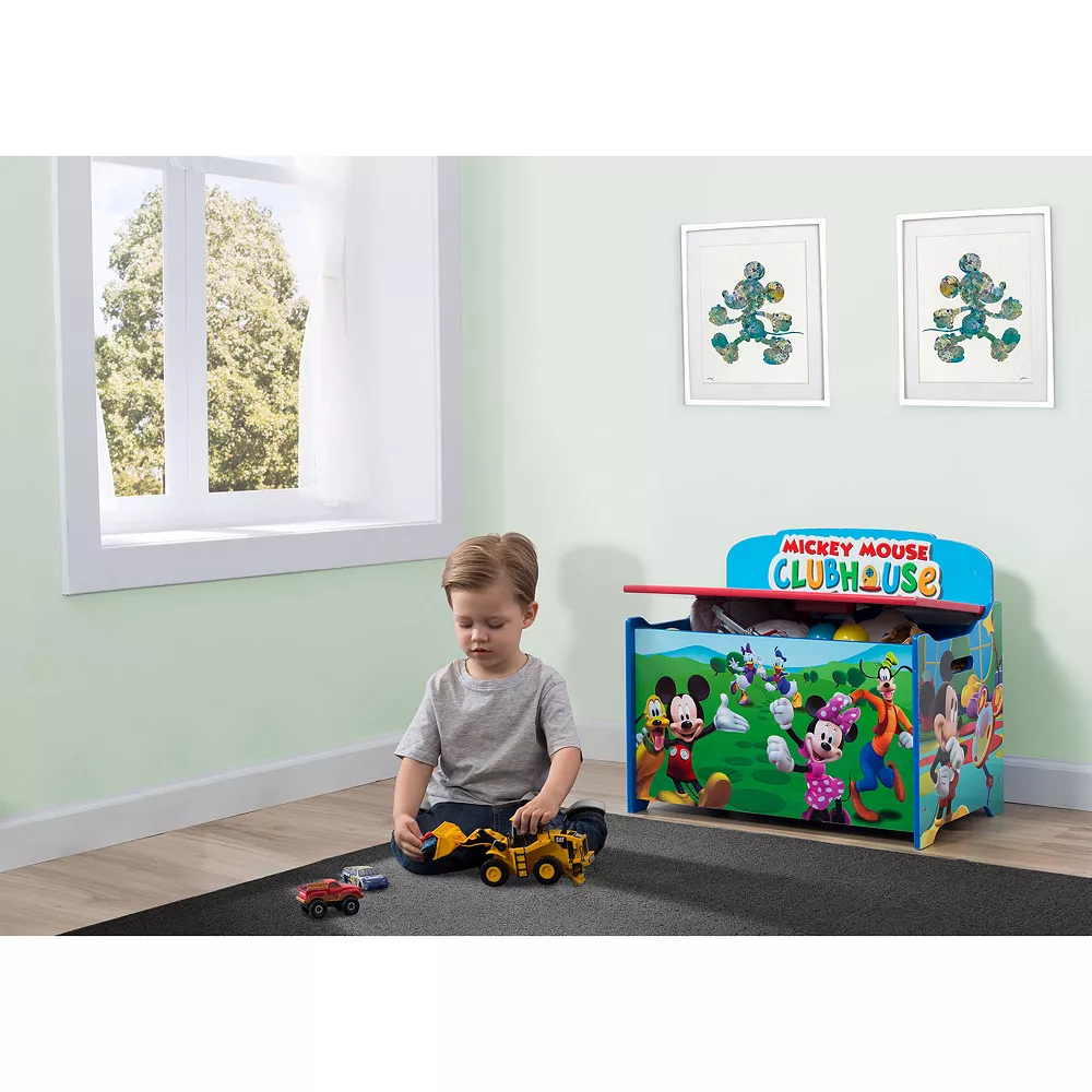 This Disney Mickey Mouse toy box features colorful graphics and a slow-closing lid.