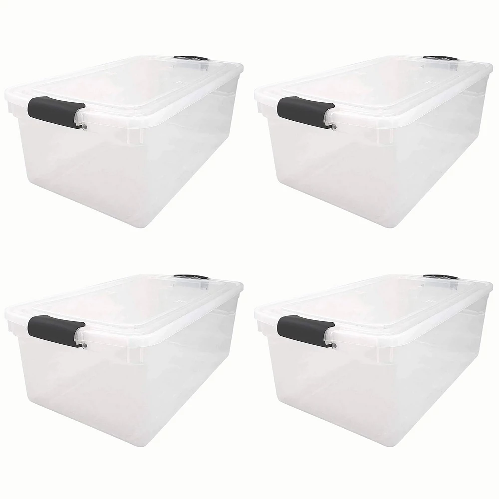 - Pack of (4) multipurpose 66-quart capacity totes is ideal for storing clothing items, seasonal holiday decorations, and other large items around your home