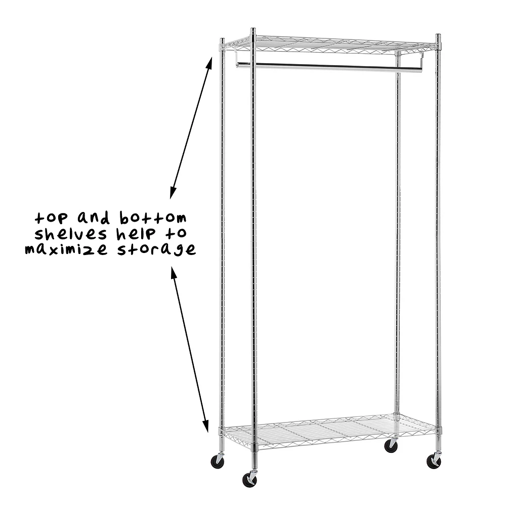 From jackets and jeans to sweaters and suits, this Honey-Can-Do garment rack gives you space to store more. In chrome.