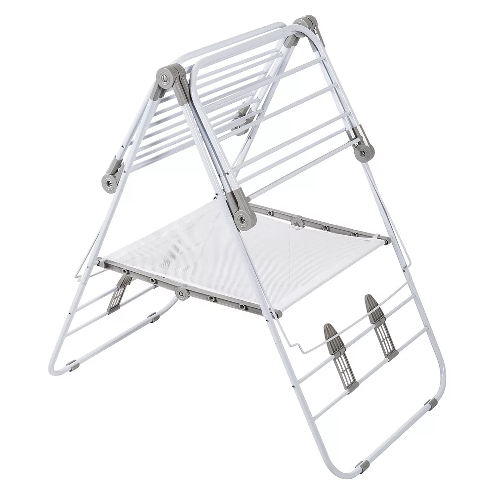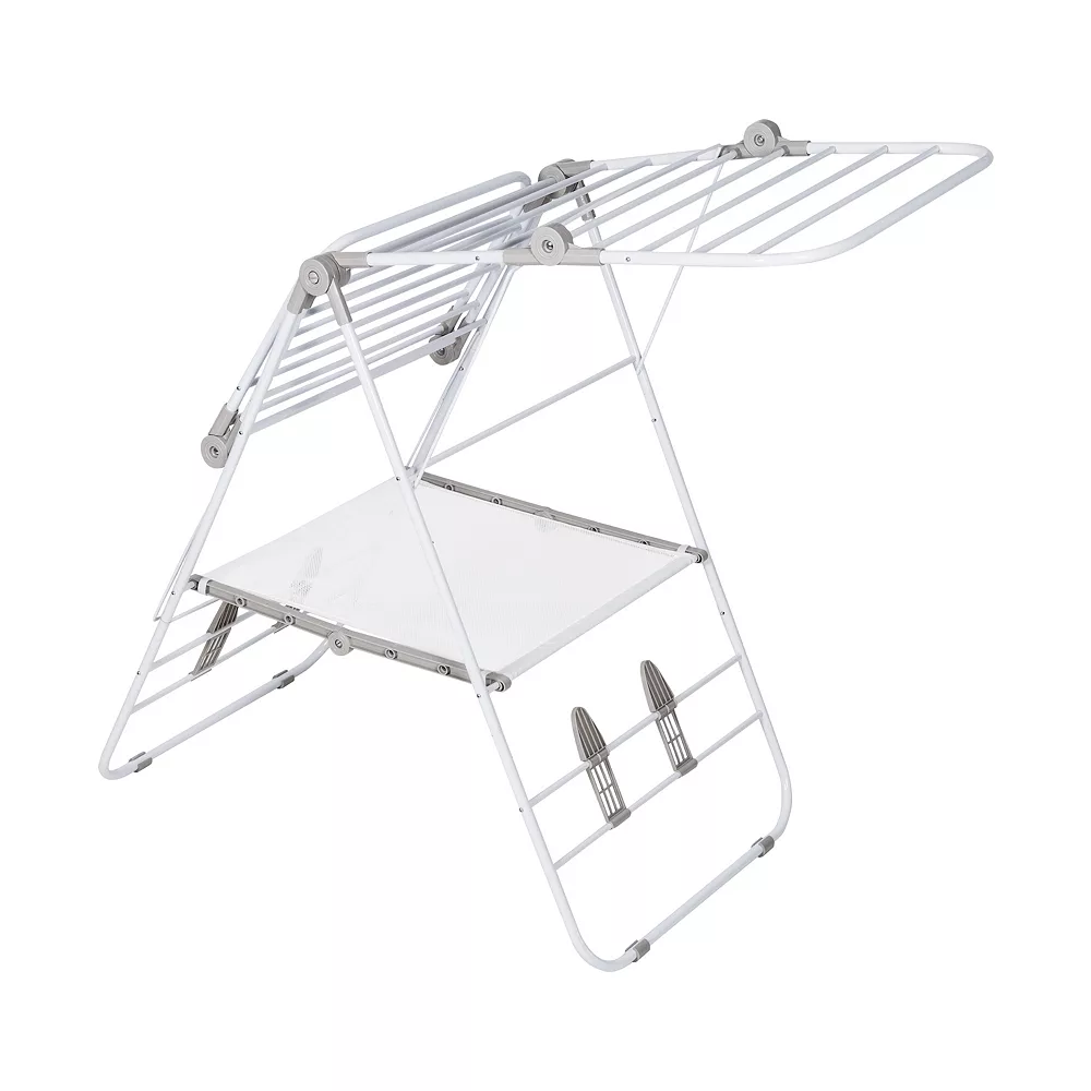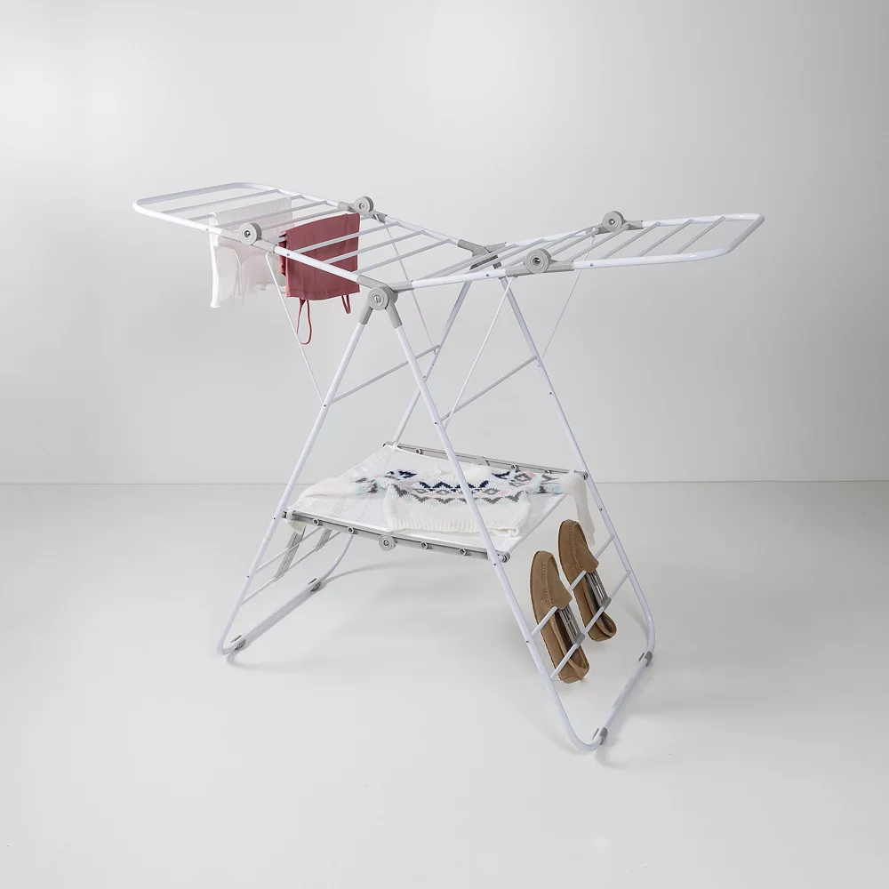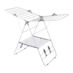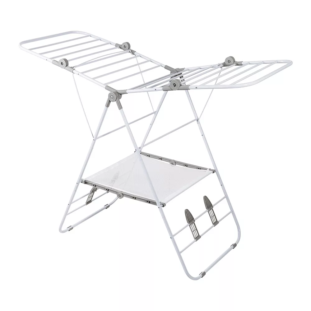 Save your clothes from shrinkage, wrinkles, fading, pilling, and static with this simple and easy-to-use large expandable and collapsible wing laundry drying rack from Honey-Can-Do.