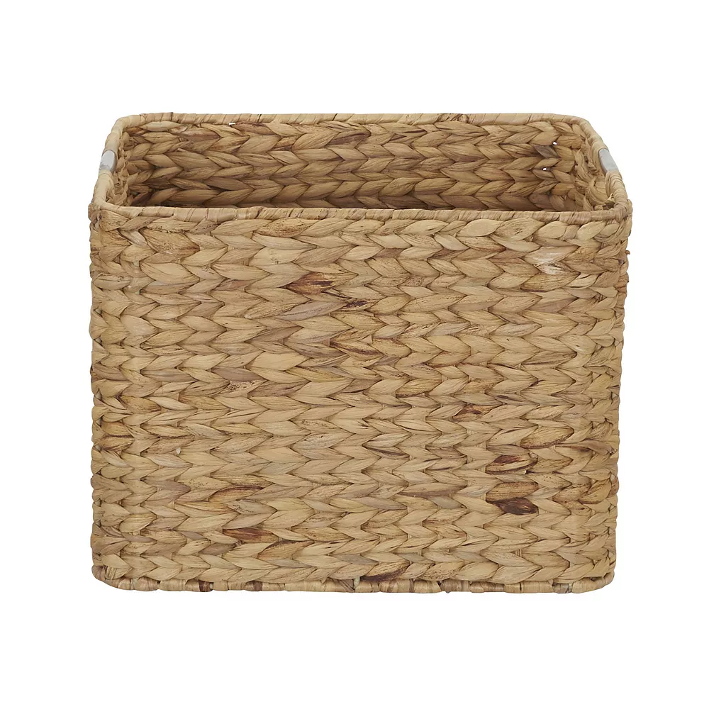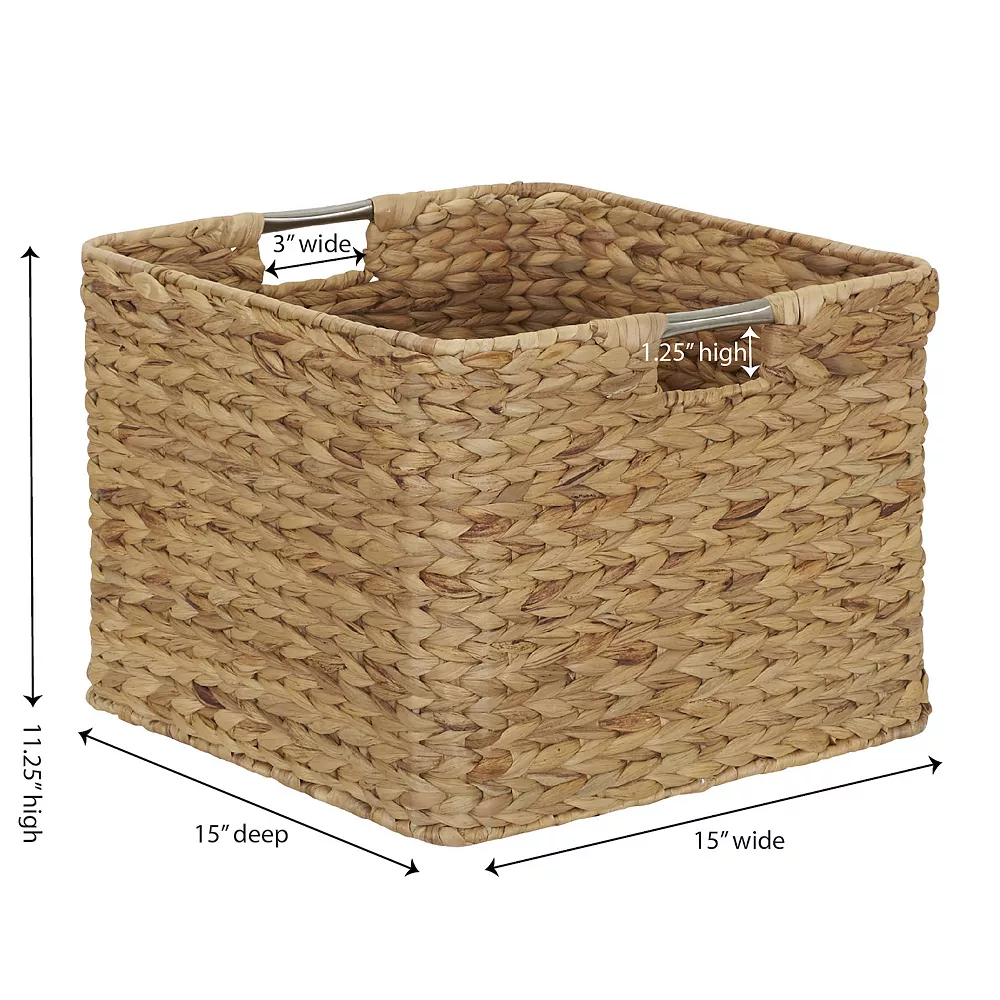 - This square wicker basket is a classic addition to any room. The strong metal frame makes it durable and sturdy. Double handles made of stainless steel for easy moving. Perfect for a bedroom, closet, living room, office and craft room. Organize throws, scarves, T-shirts, socks, magazines, vinyl records, toiletries, craft supplies and much more. Perfect choice for anyone organizing and maximizing their space