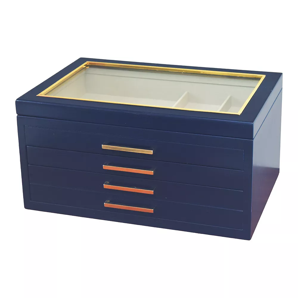 Store all of your most beloved treasures in this lovely Large Contemporary Navy Jewelry Box.