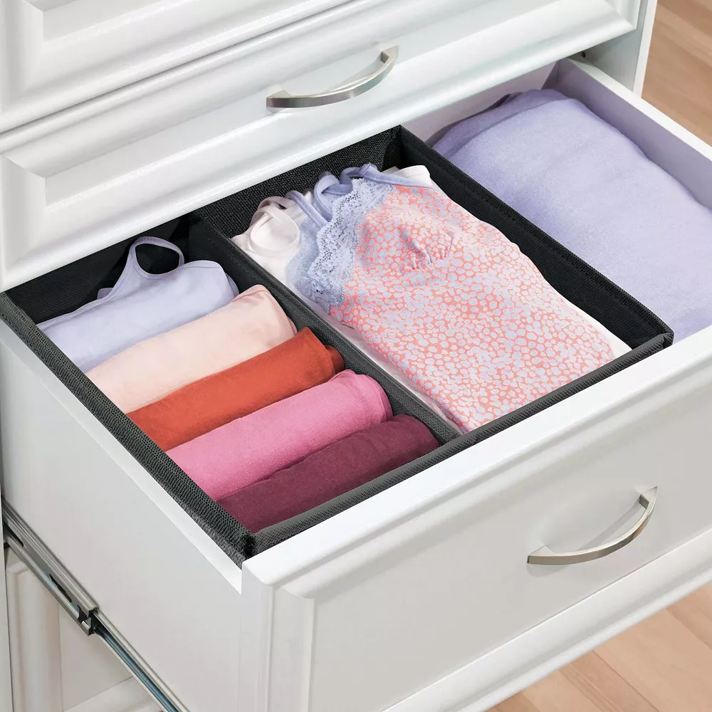 This Fabric Drawer Organizer by mDesign is the perfect solution to conquering cluttered nurseries, dresser drawers, bedrooms and closets. It creates customized, coordinated storage so you can keep all of your baby’s daily essentials at your fingertips. The open tops make contents easily visible and accessible even when you have your hands full. Use it to organize the closet, changing table, dresser top, drawers and any area in need of a little organization!
