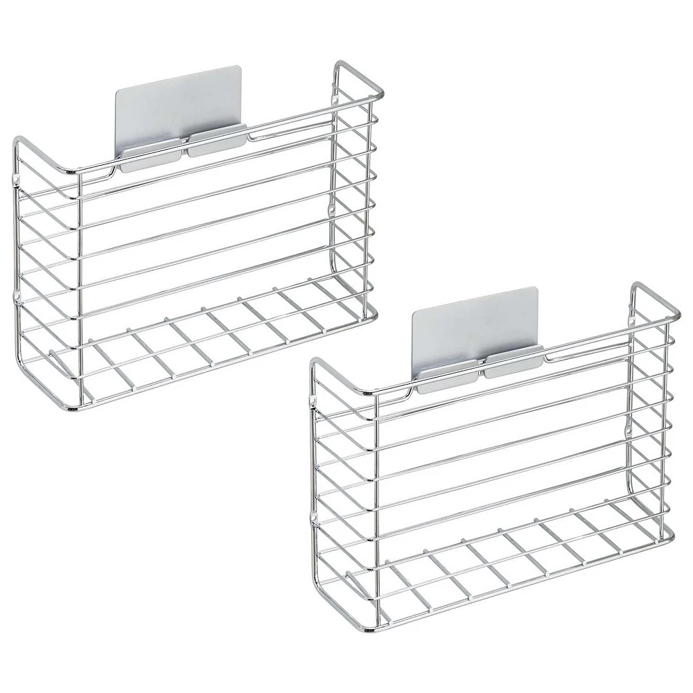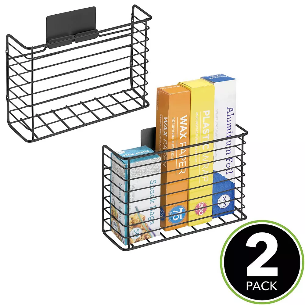 Transform your under-sink and kitchen cabinets from cluttered and crowded to streamlined and organized with the Kitchen Cabinet Storage Organizer Basket from mDesign. Organizer mounts inside cabinets doors for instant storage. The large basket provides plenty of room to store tin foil, plastic wrap, ziploc bags, cleaning supplies, and more in one convenient place. Whether you hang on the inside or outside of cabinet doors, your kitchen and cleaning essentials will be neat and tidy.