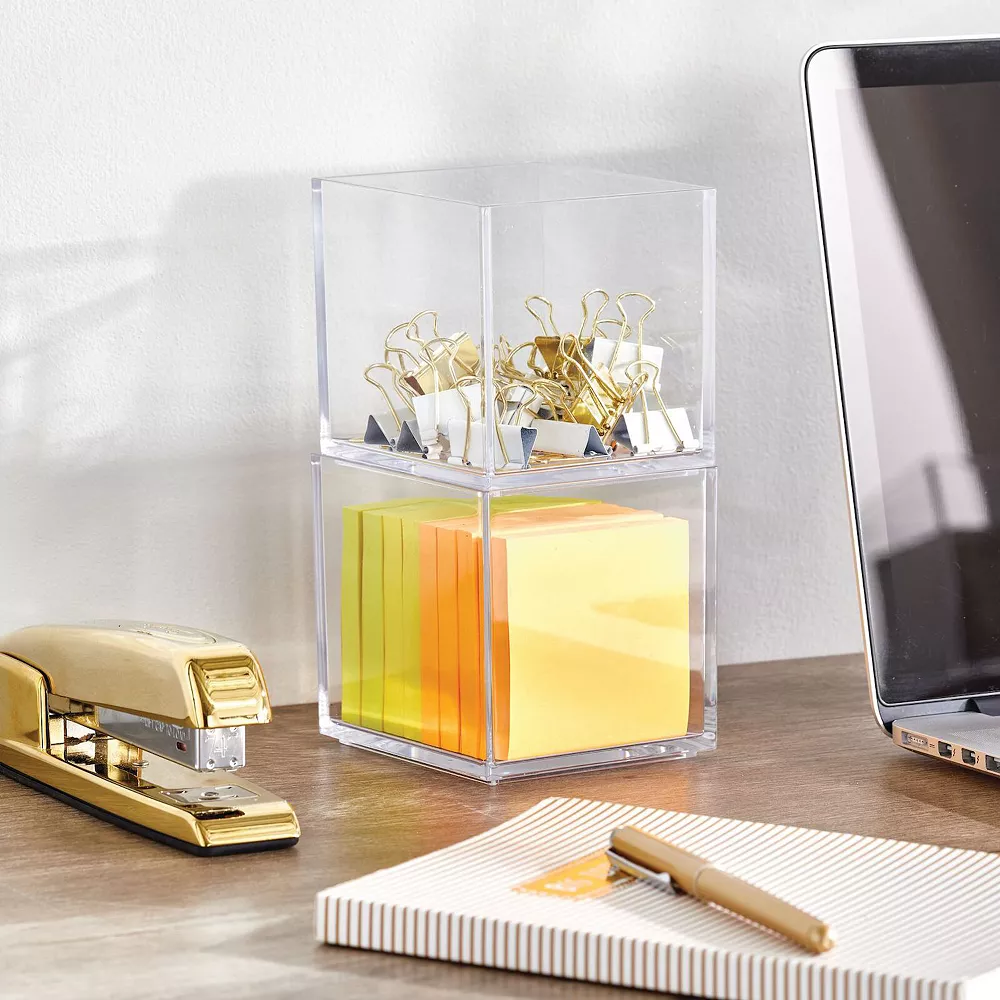 Keep your pens, dry erase markers, notebooks, paper clips, and more organized and in one convenient place with mDesign’s Organizer Bin. Made of durable BPA free plastic, the bin has built-in handles to make moving on and off shelves or in and out of drawers simple and easy. Also great for use in kitchens, bedroom and hallway closets, laundry rooms, garages and more – anywhere you need to organize!