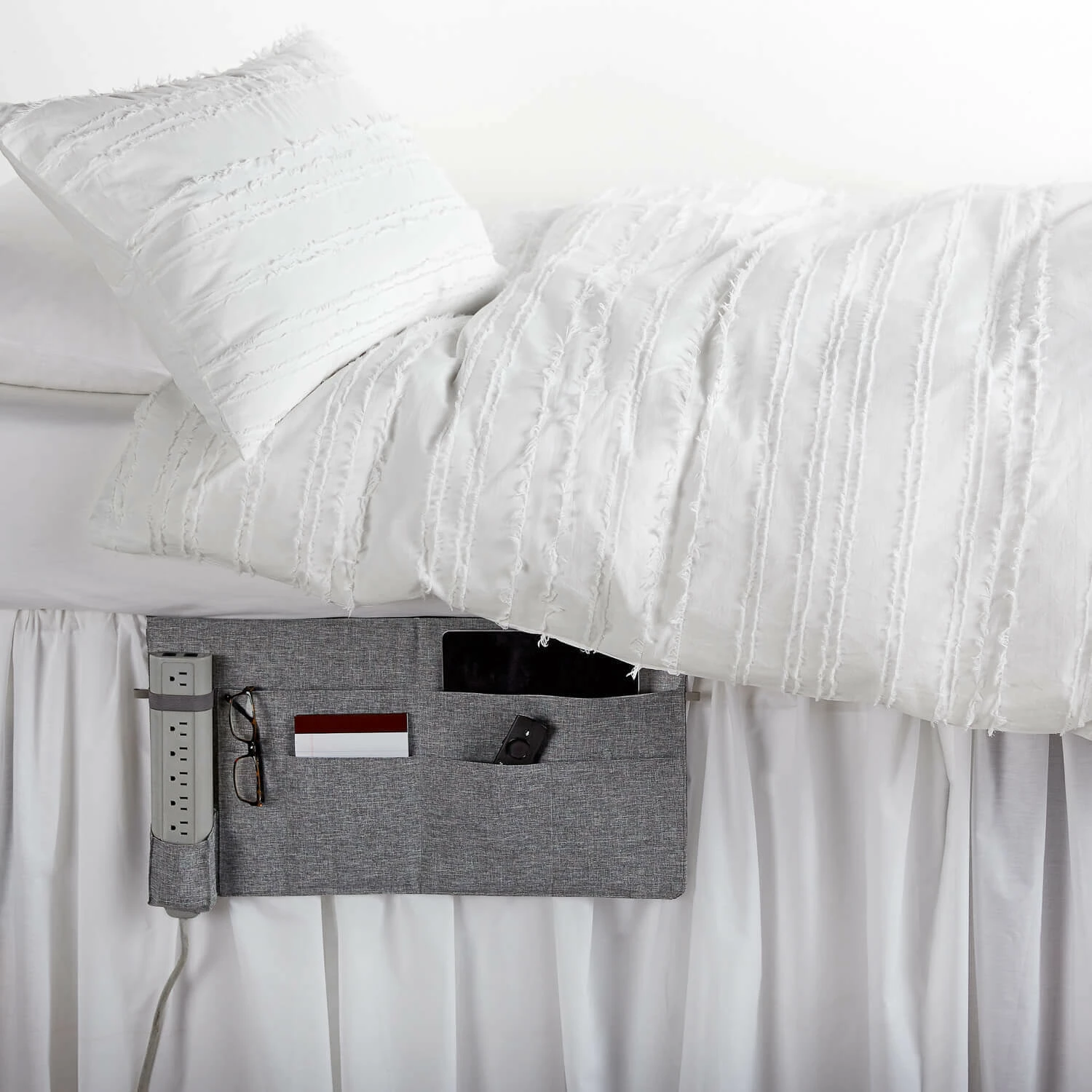 Keeps your phone, glasses and other necessities organized and right where you need them. Has an extension cord holder so you can charge all of your devices.