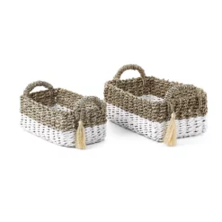 - SEAGRASS BASKETS This set of 3 seagrass baskets can be used to store magazines, clothes, toys, craft supplies, linens, and school supplies