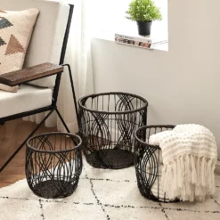 Saddle River Round Faux Wicker Decorative Basket 3-piece Set
