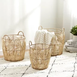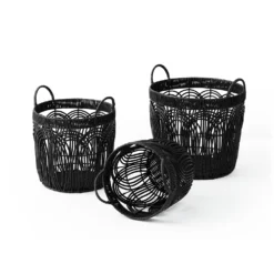 Saddle River Round Faux Wicker Open Weave Basket 3-piece Set