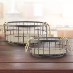 Stonebriar Collection Wire & Wood Coastal Basket 2-piece Set