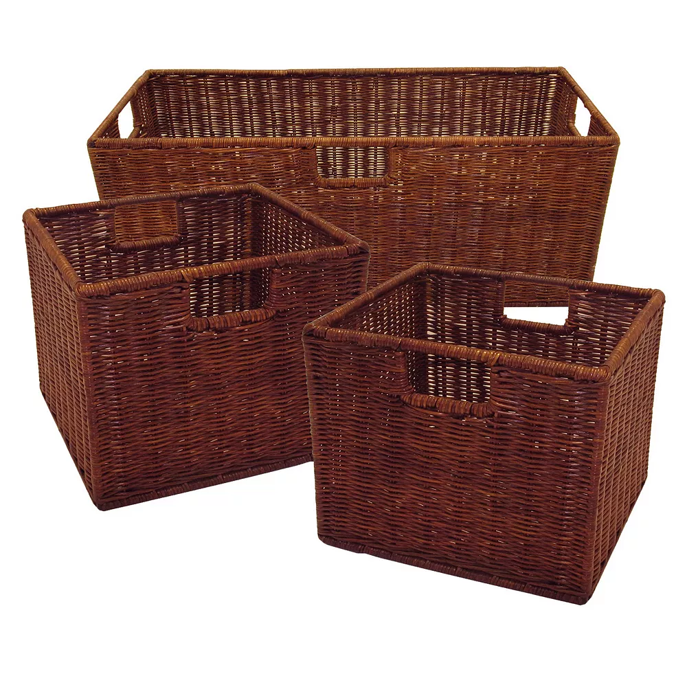 These Winsome Leo storage bins provide the perfect blend of fashion and function. The wicker design creates a classic look without sacrificing modern utility. For more storage bins, shop our full selection of home accessories on Kohls.com. In antique-walnut finish.